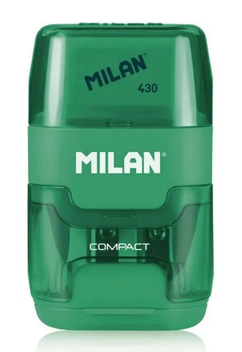 Διπλή ξύστρα μολυβιών της MILAN με γόμα και κάδο απορριμμάτων για καθαρό και εύκολο ξύσιμο των μολυβιών χωρίς υπολείμματα.