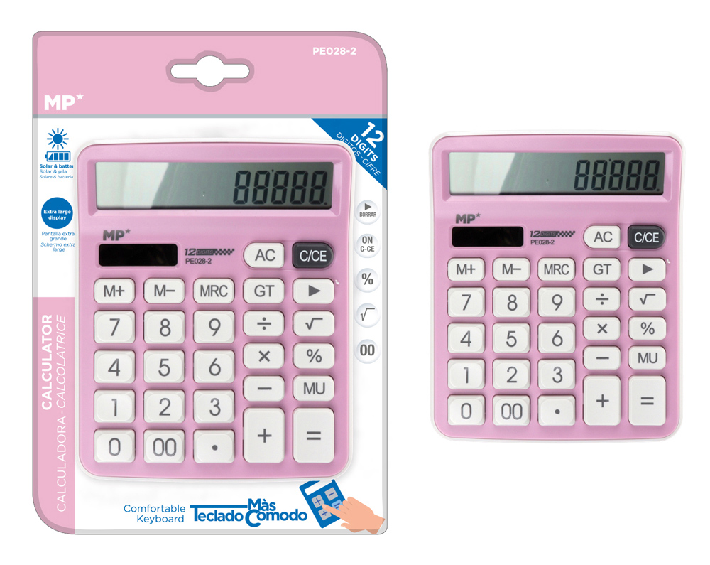 MP αριθμομηχανή PE028-2, ηλιακό & μπαταρίες, 12 ψηφία, ροζ