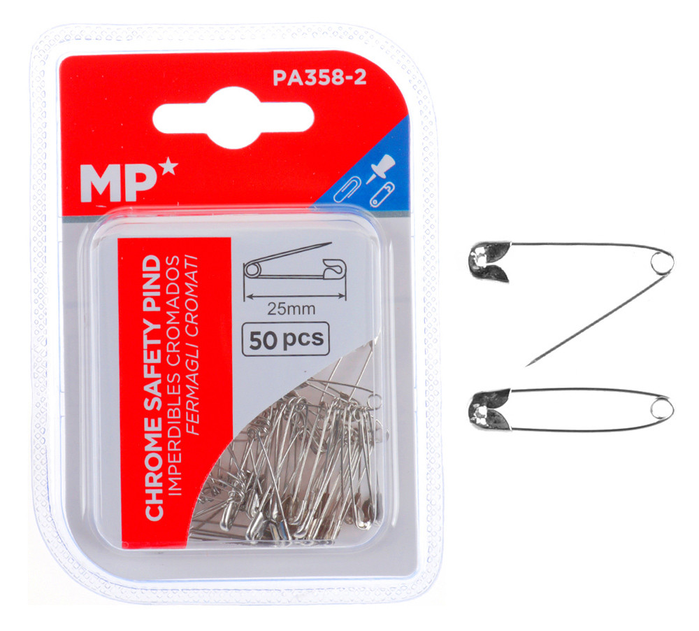 MP παραμάνες PA358-2, μεταλλικές, 25mm, ασημί, 50τμχ