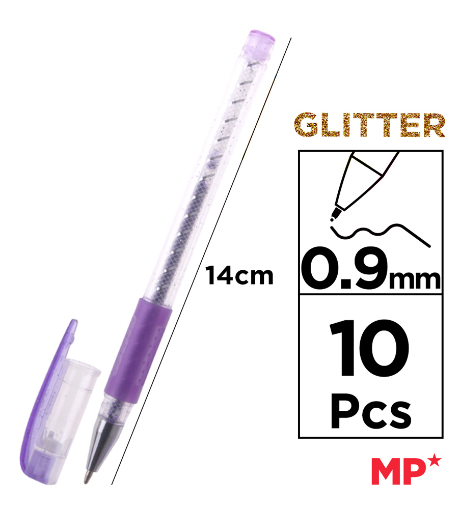 MP σετ στυλό διαρκείας ballpoint PE105 με glitter, 0.9mm, διάφορα χρώματα, 10τμχ
