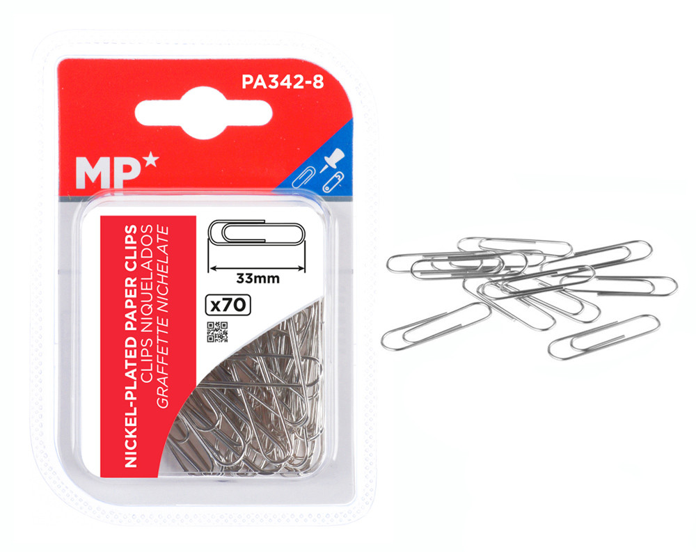 MP συνδετήρες PA342-8, μεταλλικοί, 33mm, ασημί, 70τμχ