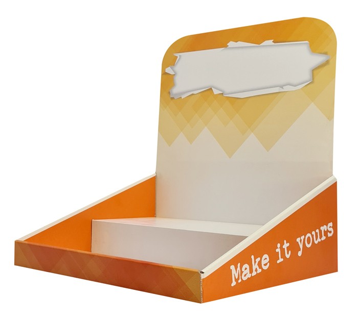 Διαφημιστικό stand προβολής προϊόντων, για τοποθέτηση επάνω σε πάγκο. Το stand προβάλει αποτελεσματικά τα προϊόντα σας, διατηρώντας τον χώρο σας τακτοποιημένο.