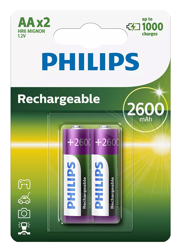 PHILIPS επαναφορτιζόμενη μπαταρία R6B2A260 2600mAh, AA HR6 Mignon, 2τμχ
