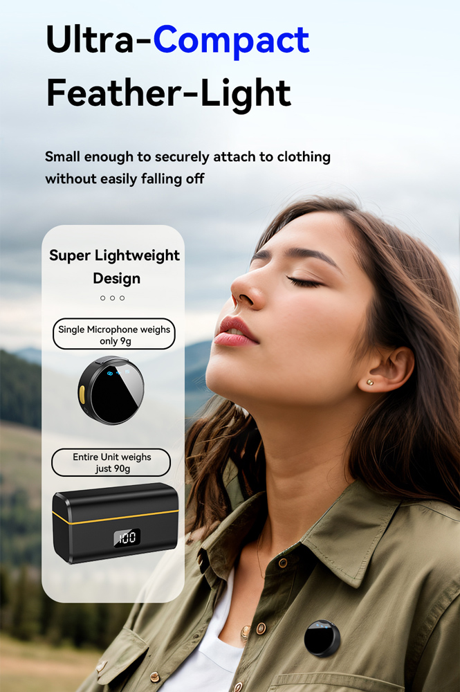 Συνδέονται με το smartphone ή tablet σας ασύρματα, μέσω του receiver και της θύρας USB-C. Η στερέωση των μικροφώνων γίνεται εύκολα στο ρούχο σας με μαγνητικό κλιπ συγκράτησης.