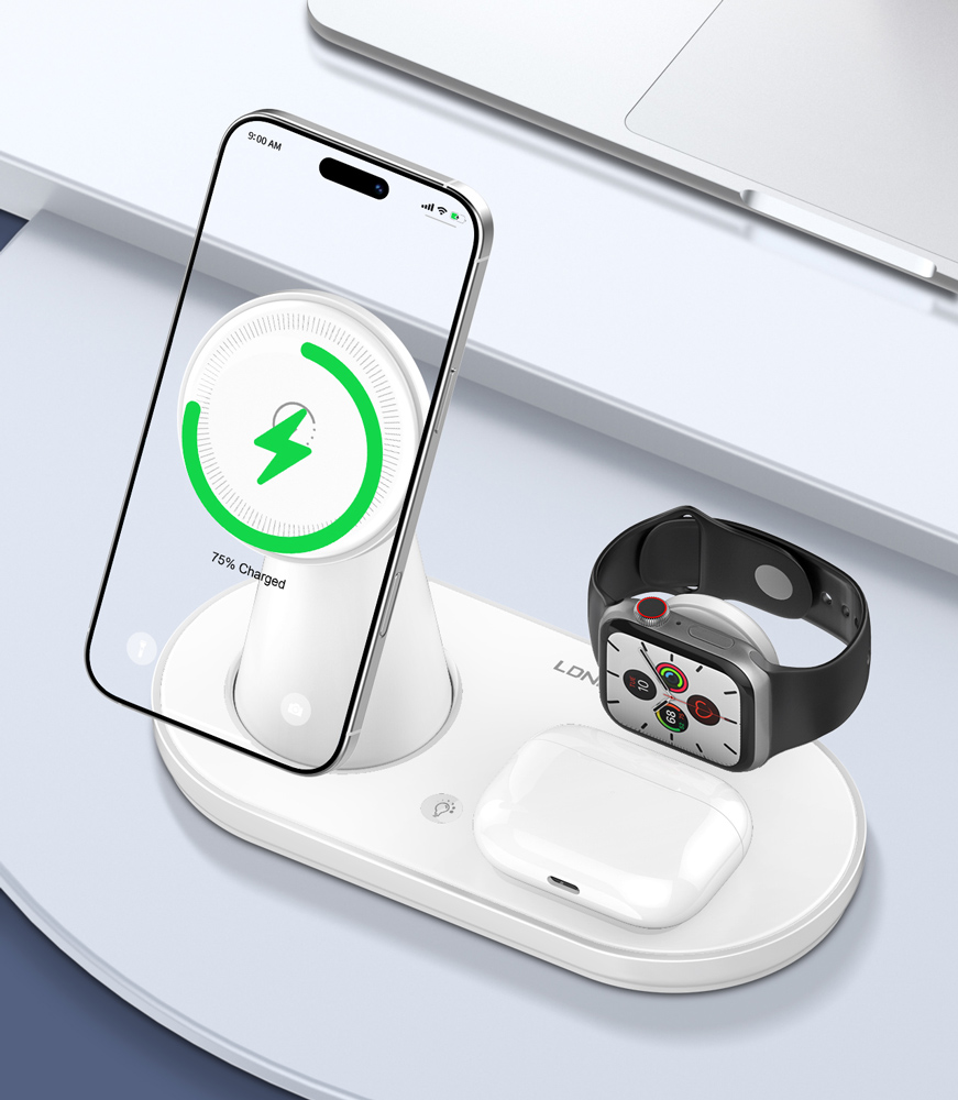 LDNIO ασύρματος φορτιστής WL01 με LED φωτισμό, 3 σε 1, 15W, λευκός