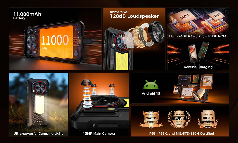OUKITEL smartphone WP53 με ηχείο 3W, 6.52″, 8/128GB, 11000mAh, IP68/IP69K/MIL-STD-810H, μαύρο