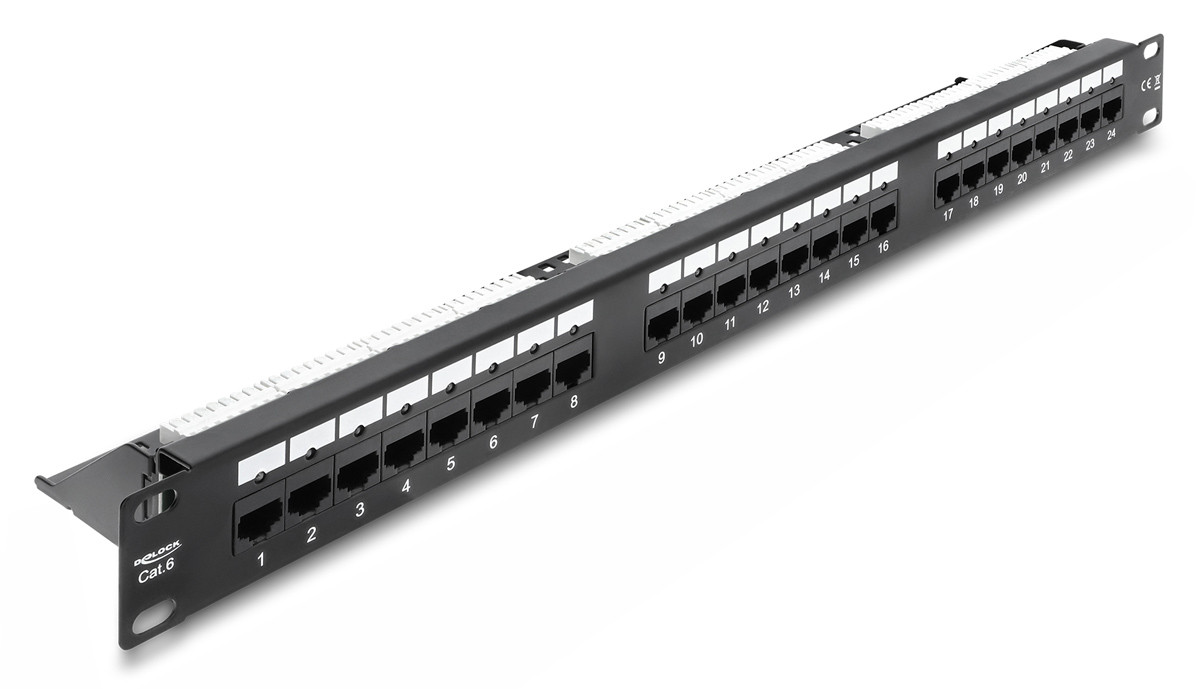 DELOCK patch panel 91087 για rack 19″, 1U, 24 θυρών, CAT 6 UTP, μαύρο