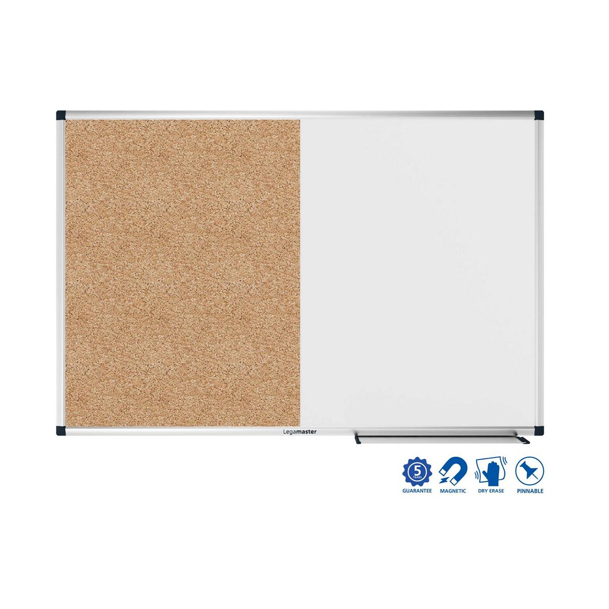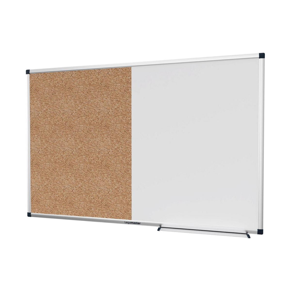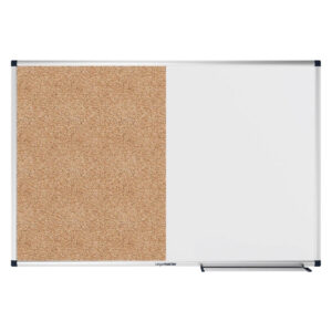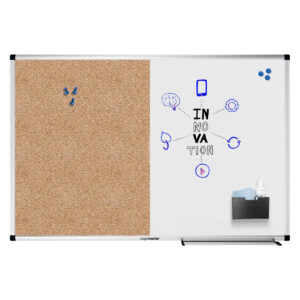 • Η μισή πλευρά είναι καλυμμένη με επιφάνεια μαγνητικής επένδυσης από λευκό ατσάλι, ιδανική για χρήση με μαρκαδόρους λευκού πίνακα, ενώ η άλλη μισή διαθέτει πίνακα με φυσική επιφάνεια φελλού.