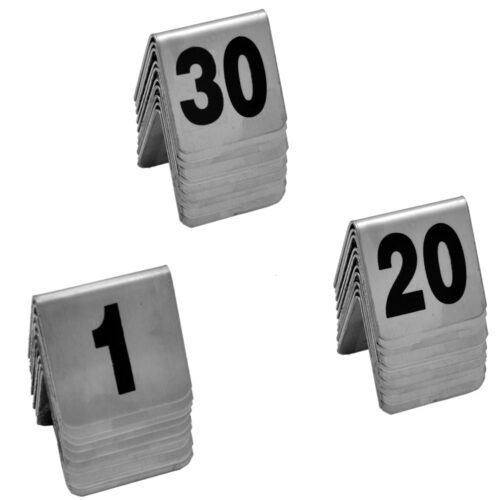 • Νούμερα τραπεζιών από inox με μαύρη εκτύπωση.
