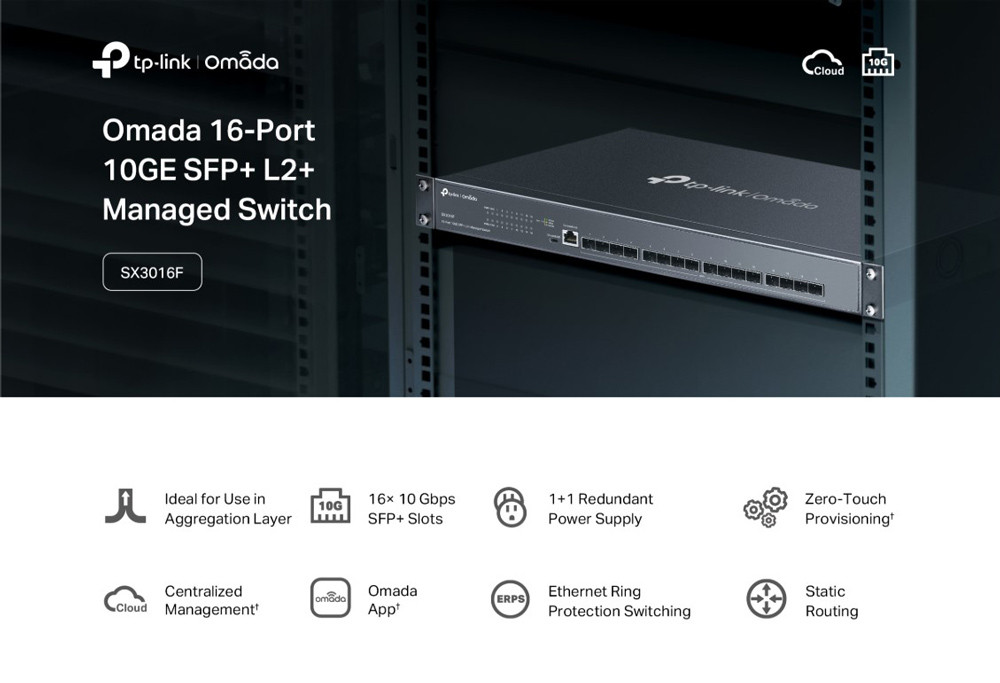 TP-LINK L2+ managed switch SX3016F, 16x 10Gbps SFP+ θύρες, V1.20
