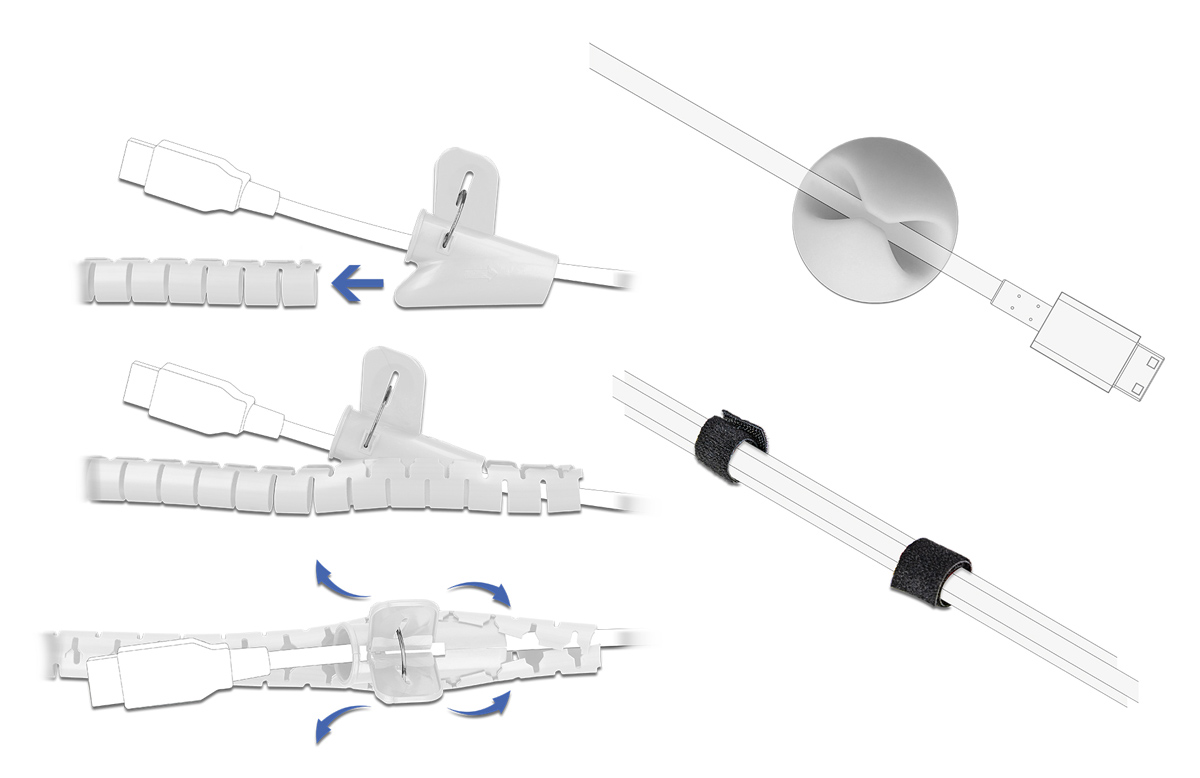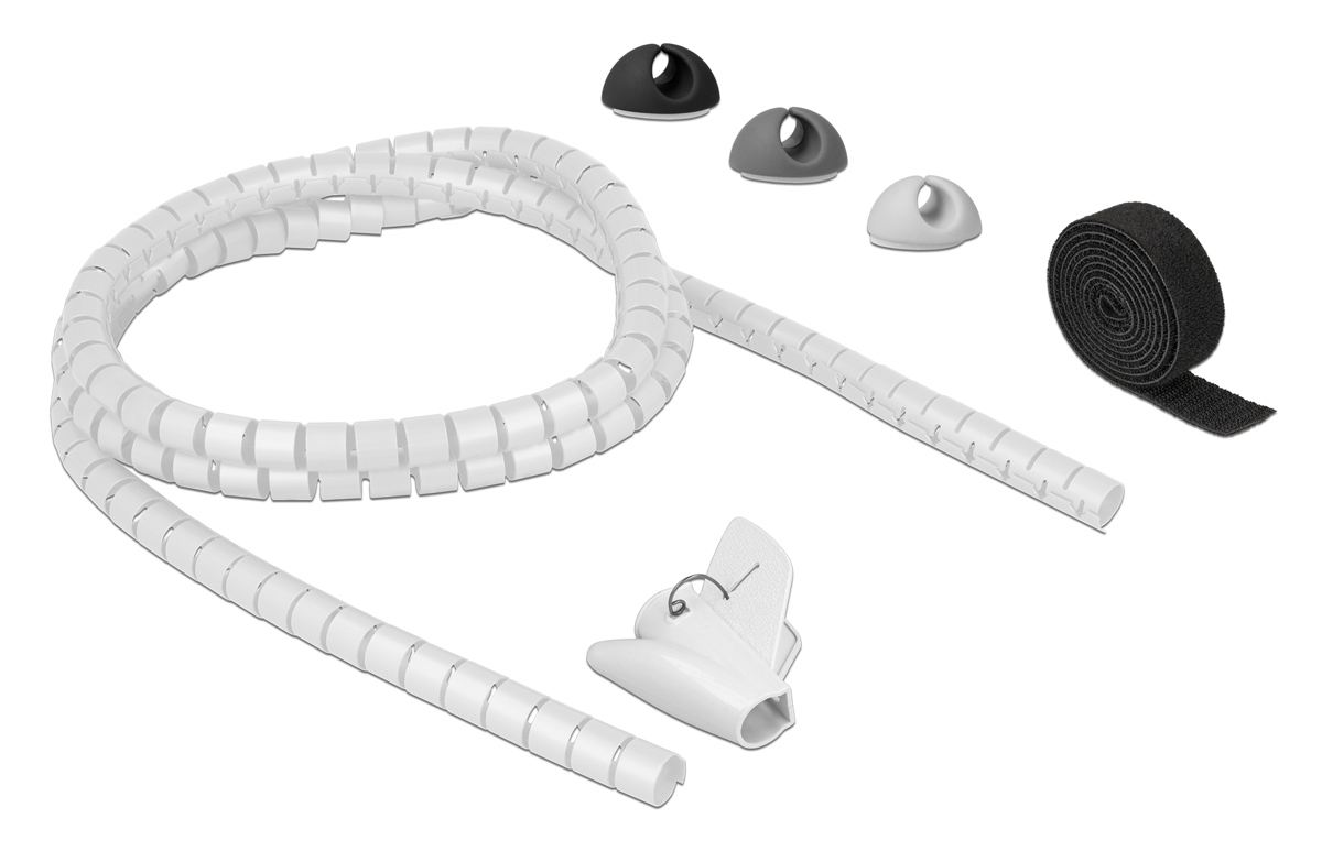 Το σετ αποτελείται από 3x οργανωτές καλωδίων σιλικόνης, 1x δεματικό καλωδίων πλαστικό και 1x ταινία τύπου velcro.