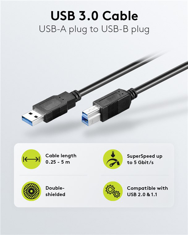 GOOBAY καλώδιο USB 3.0 σε USB Type B 95721, 0.25m, 5Gbps, μαύρο