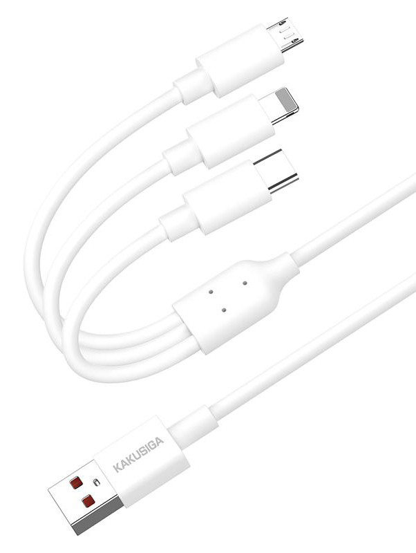 KAKUSIGA καλώδιο USB σε USB-C/Lightning/Micro USB KSC-1021, 5A, 1.2m, λευκό