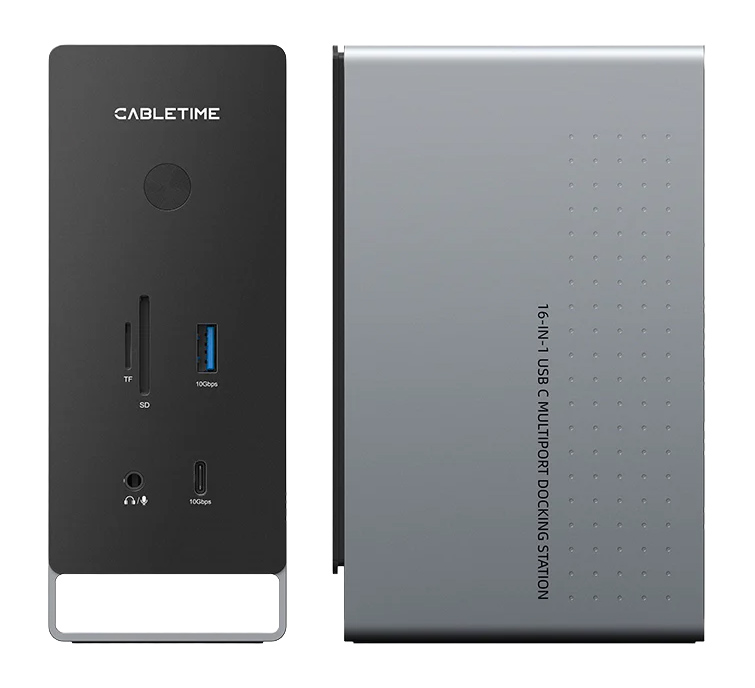 CABLETIME docking station CT-DK181-AG, 16 θυρών, USB-C σύνδεση, 100W PD, 1000Mbps, MST, γκρι