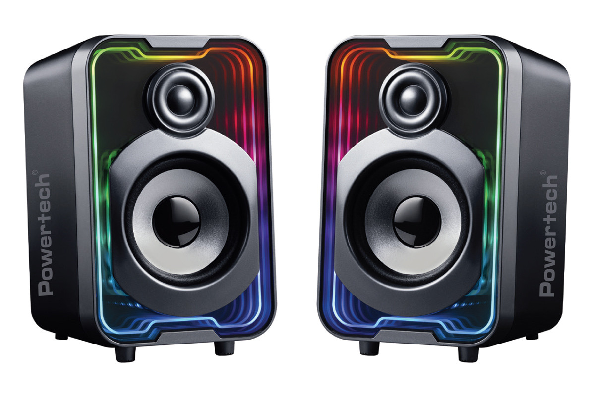 POWERTECH ηχεία PT-1575 με RGB φωτισμό, 2x 5W, Bluetooth & USB/USB-C, μαύρα