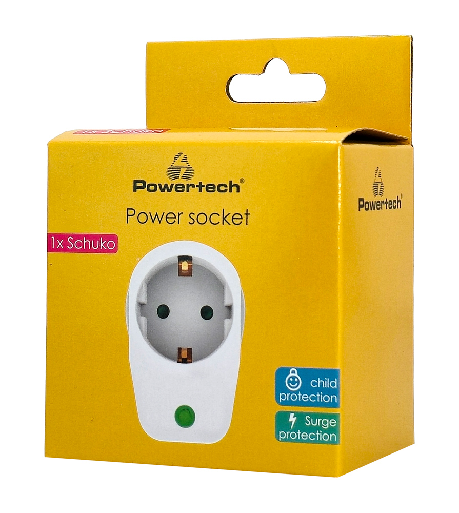 POWERTECH αντάπτορας ρεύματος PT-996, 1 θέση schuko, 16A, 3680W, λευκός