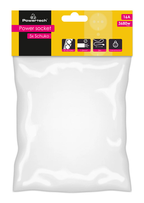 POWERTECH πολύπριζο PT-871, 5x schuko, 16A, 3m, λευκό