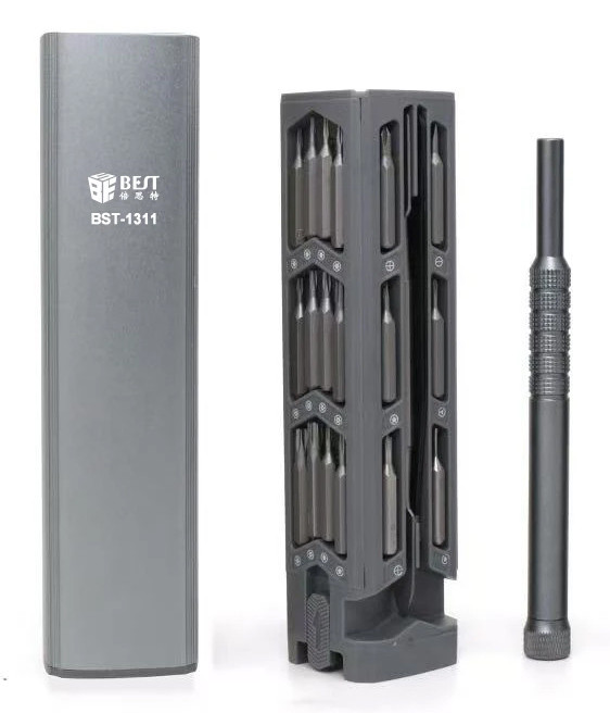 Σετ της BEST το οποίο αποτελείται από 1 κατσαβίδι, ίσια τσιμπίδα, εργαλείο ανοίγματος με διπλή κεφαλή και 42 διαφορετικές μύτες κατσαβιδιού.