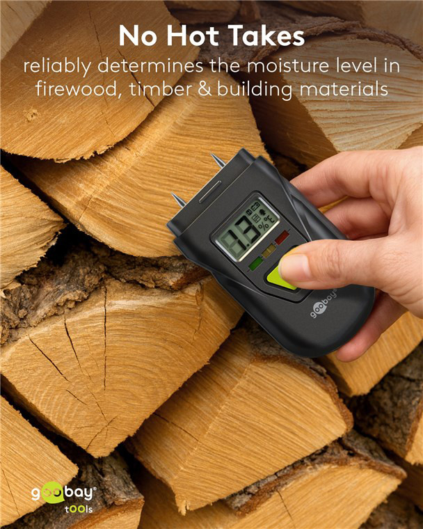 Ψηφιακό θερμόμετρο και υγρασιόμετρο της Goobay, ιδανικό για μέτρηση υγρασίας και θερμοκρασίας σε υλικά όπως ξύλο, μπετόν, τοίχους και άλλα δομικά στοιχεία. Χάρη στον compact σχεδιασμό του, αποτελεί πρακτικό εργαλείο για τεχνικούς, εργασίες ανακαίνισης ή ελέγχους υγρασίας σε εσωτερικούς χώρους.