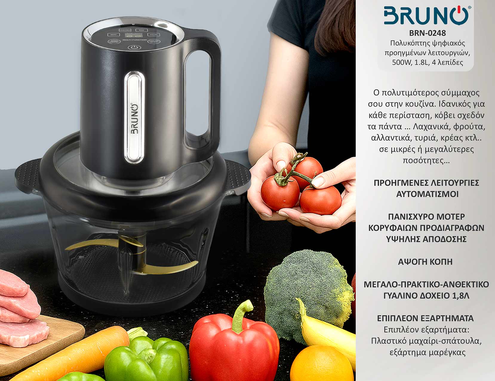 Ο ψηφιακός πολυκόπτης προηγμένων λειτουργιών Bruno BRN-0248, ήρθε για να γίνει ο πολυτιμότερος σύμμαχος σου στην κουζίνα
