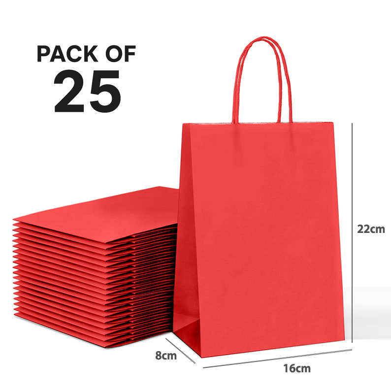Χάρτινες σακούλες δώρου σε έντονο κόκκινο χρώμα, κατασκευασμένες από ανθεκτικό χαρτί 120 g/m². Είναι 100% ανακυκλώσιμες και διαθέτουν πιστοποίηση FSC, εξασφαλίζοντας οικολογική και υπεύθυνη παραγωγή. Διατίθενται σε συσκευασία των 25 τεμαχίων. Ιδανικές για καταστήματα, δώρα, προωθητικές ενέργειες και εκδηλώσεις.