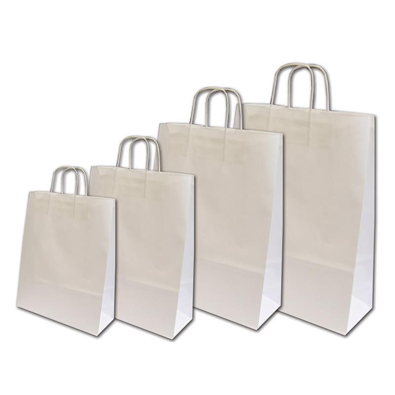 • Χάρτινες τσάντες λευκές με στριφτό χερούλι για μεγαλύτερη αντοχή.