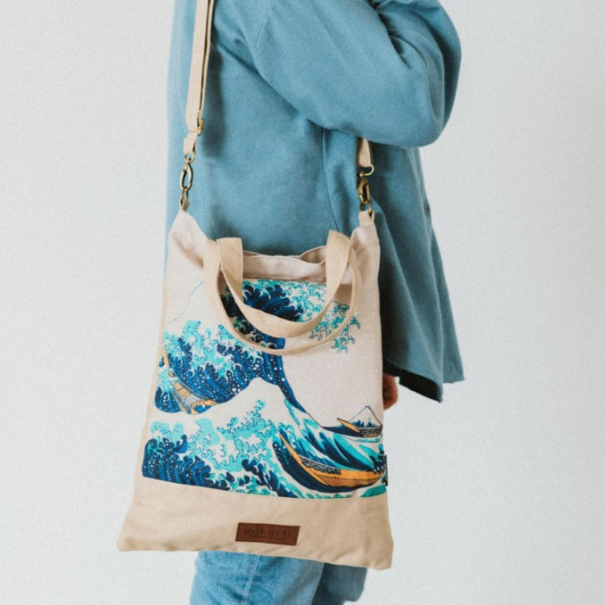• Υπέροχη υφασμάτινη τσάντα από τη συλλογή Hokusai της Kokonote .