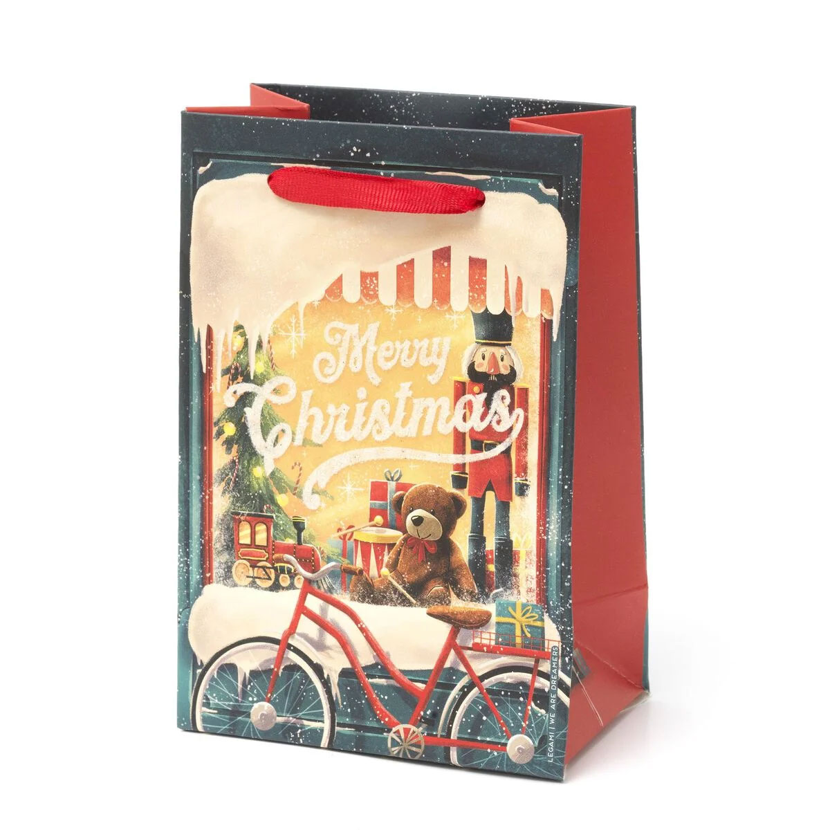 Ετοιμαστείτε για τα Χριστούγεννα και σκορπίστε εορταστική χαρά με αυτή τη χριστουγεννιάτικη τσάντα δώρου μικρού μεγέθους με το πανέμορφο γραφιστικό του ταλαντούχου εικονογράφου Adrian Macho με θέμα εμνευσμένο από μια χριστουγεννιατική vintage βιτρίνα καταστήματος. Η εντυπωσιάκη τσάντα δώρου της Legami είναι άριστης ποιότητας κατασκευασμένη από ματ πλαστικοποιημένο χαρτί 210 g/m² και λαβές από κορδέλα, και είναι η τέλεια πινελιά για τα χριστουγεννιάτικα δώρα σας.
