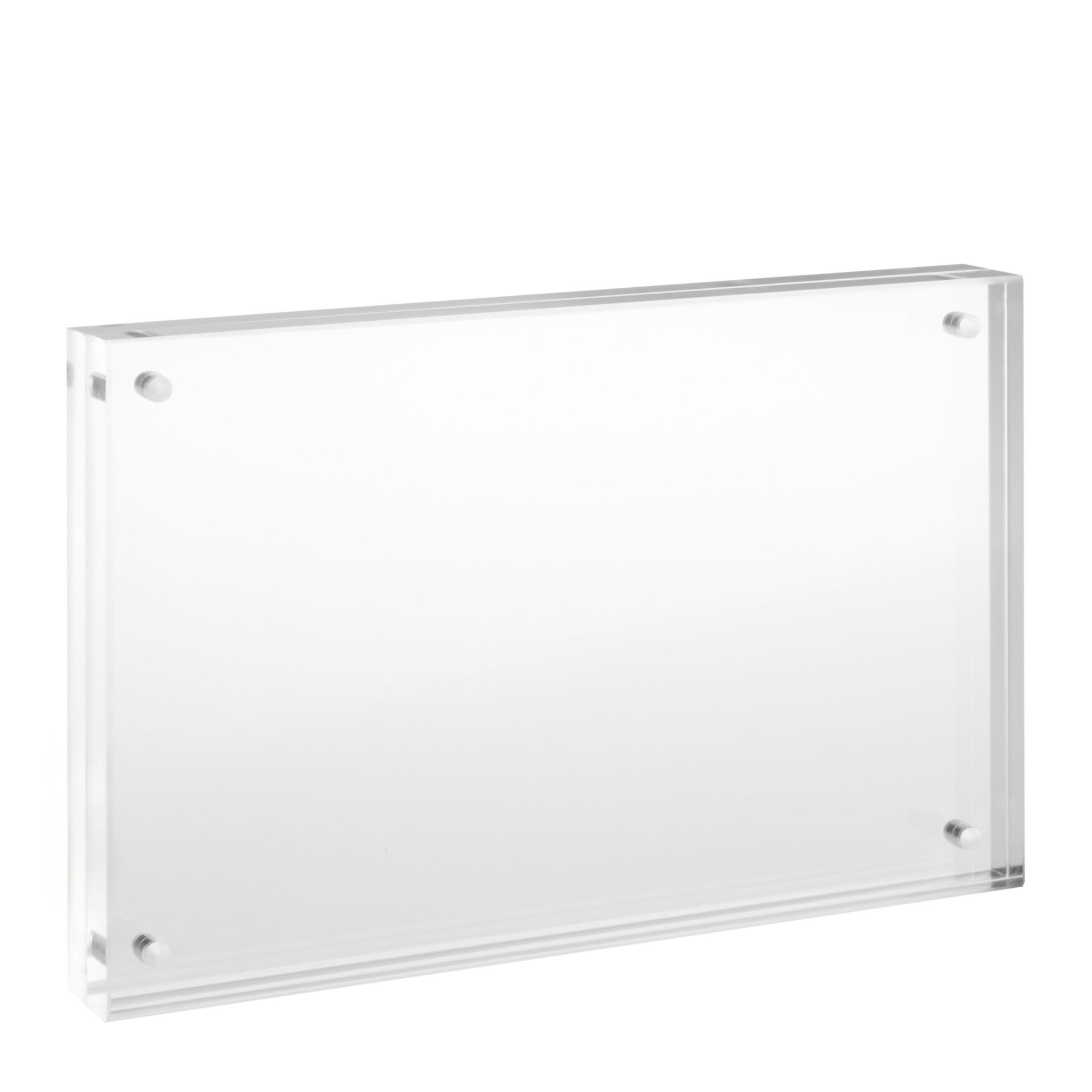 Aποτελείται από δύο διαφανείς ακρυλικές πλάκες, οι οποίες συγκρατούνται μεταξύ τους με 4 μαγνήτες, διευκολύνοντας την αλλαγή περιεχομένων. Ιδανικό για την παρουσίαση καταλόγων προσφορών ή τιμών στο σημείο πώλησης ή ως κορνίζες για φωτογραφίες στο γραφείο.